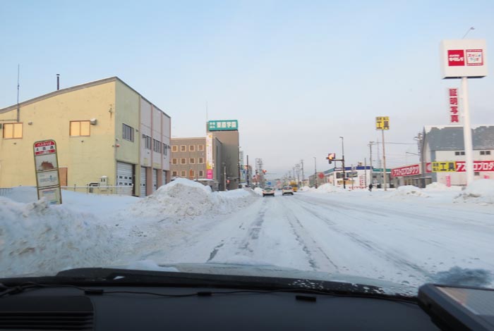 午前7時30分、北4条通りの国道39号交差点から緑園通り方向