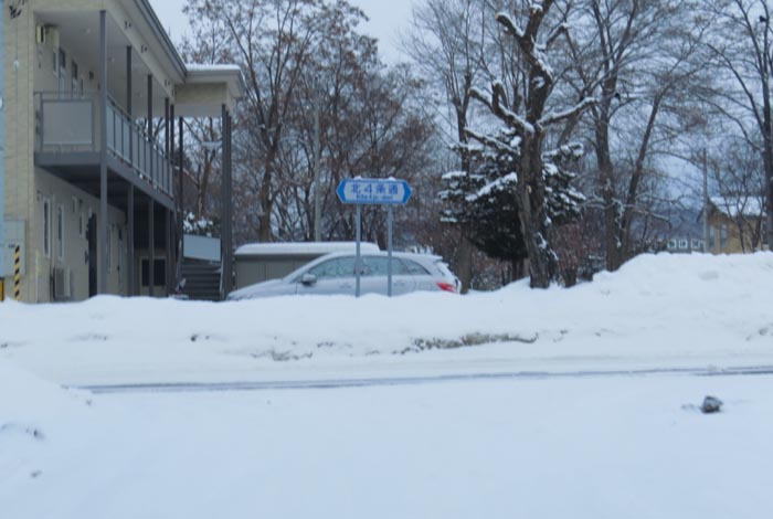 午前7時30分、松浦水産駐車場裏の通りを北3条通り側から北4条通り方向