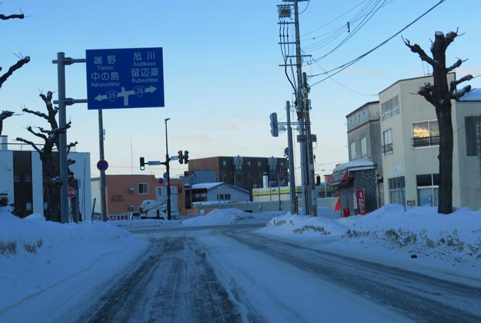 午前7時30分、松浦水産駐車場裏の通りを北3条通り側から北4条通り方向