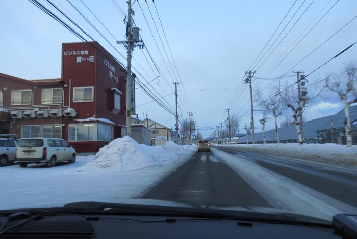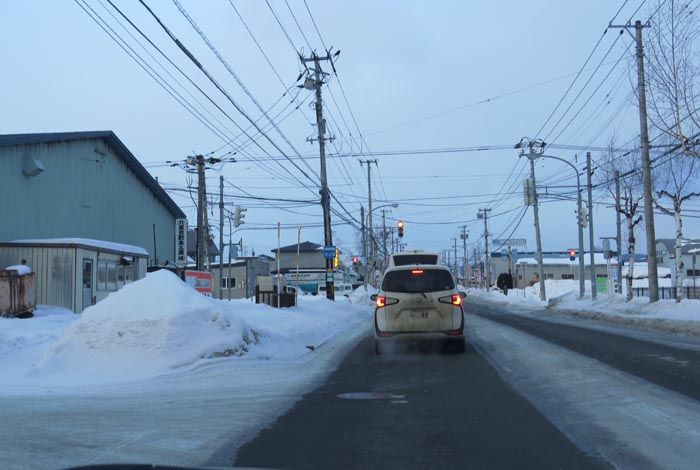 午前7時30分、南岸通り、野付牛自動車学校前から無加川町方向