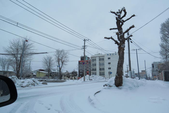 午前7時30分、松浦水産駐車場裏の通りを北3条通り側から北4条通り方向