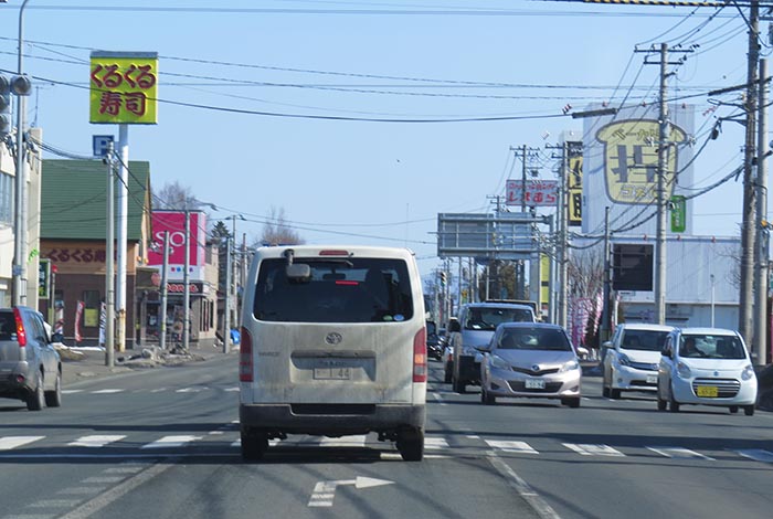 国道39号、五差路から北見駅方向