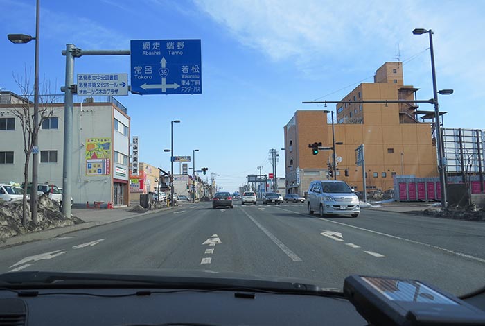 国道39号、五差路から北見駅方向