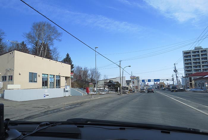 午前9時20分、国道39号の五差路から左は石北峠・旭川・札幌方面