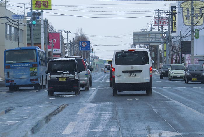 国道39号、公園町の千葉クリニックから東6号線昭和通り交差点方向