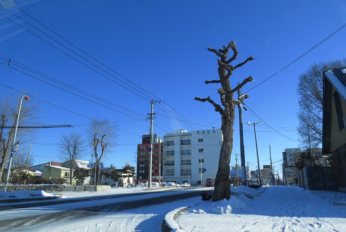 午前7時30分、松浦水産駐車場裏の通りを北3条通り側から北4条通り方向