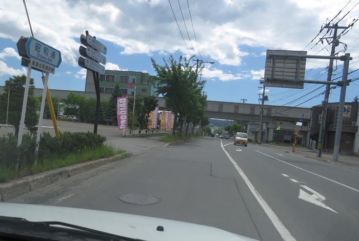 前方がJR石北本線高架橋、写真右が北見駅方向