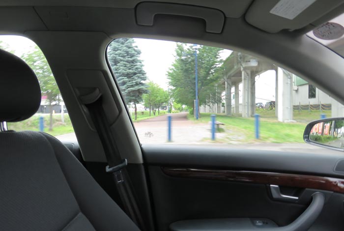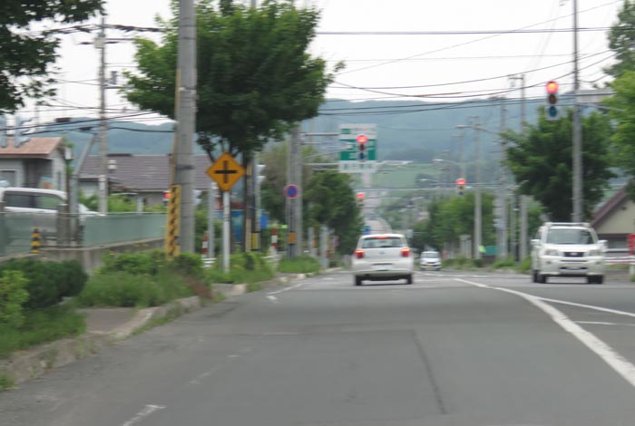 前方がJR石北本線高架橋、写真右が北見駅方向