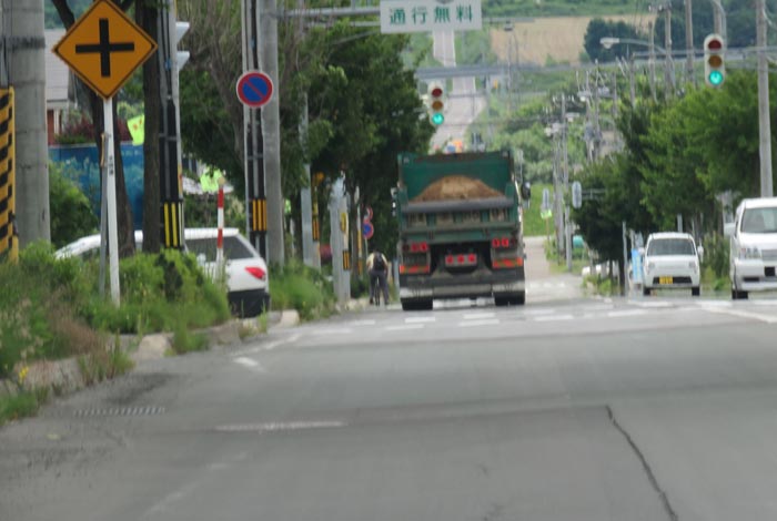 前方がJR石北本線高架橋、写真右が北見駅方向
