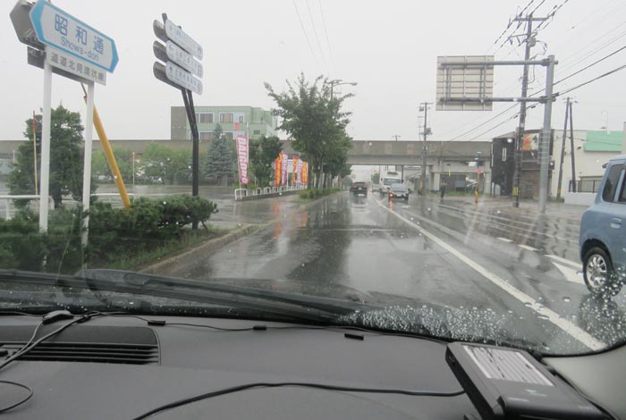 前方がJR石北本線高架橋、写真右が北見駅方向