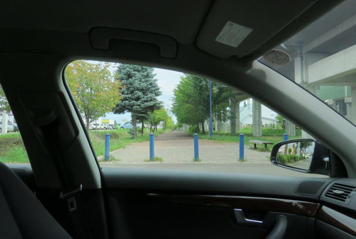 前方がJR石北本線高架橋、写真右が北見駅方向