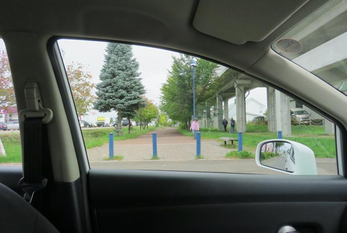 前方がJR石北本線高架橋、写真右が北見駅方向