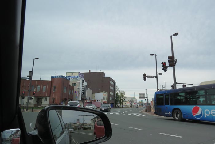 午前7時30分、西4丁目通りから右折して国道39号