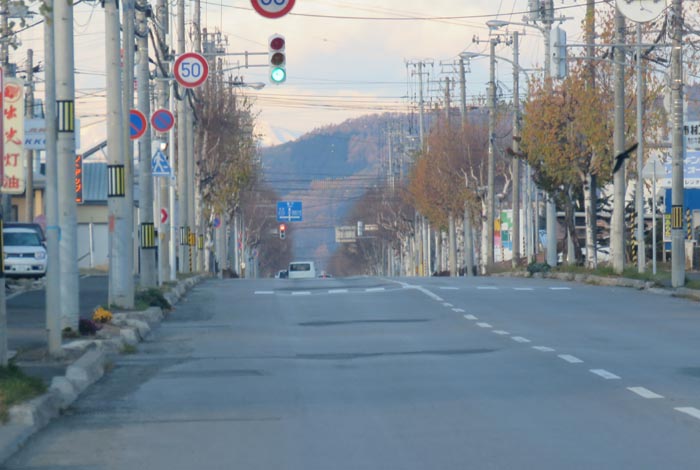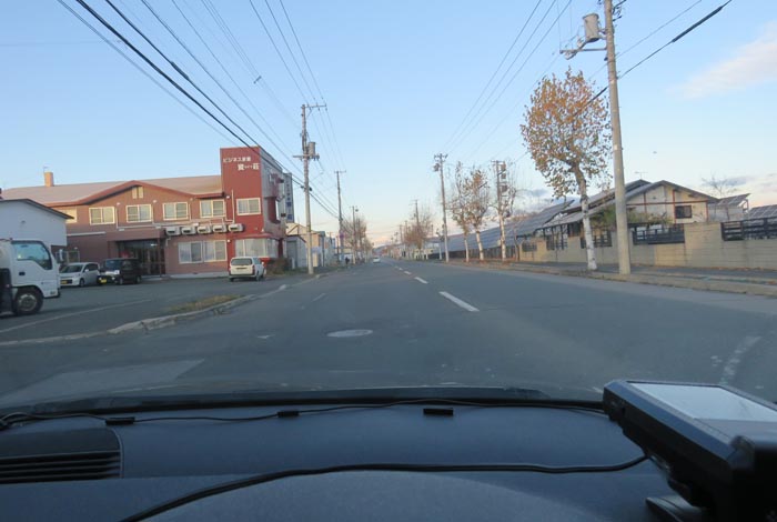 午前7時30分、南岸通り、野付牛自動車学校前から無加川町方向