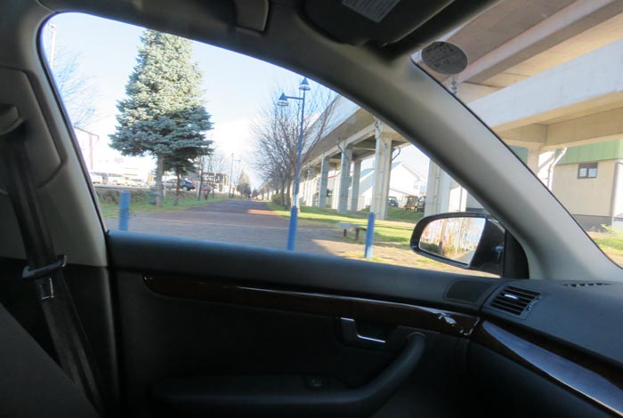 前方がJR石北本線高架橋、写真右が北見駅方向