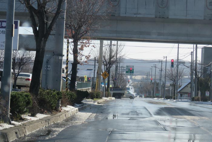 昭和通りのJR高架橋下から北見大橋方向