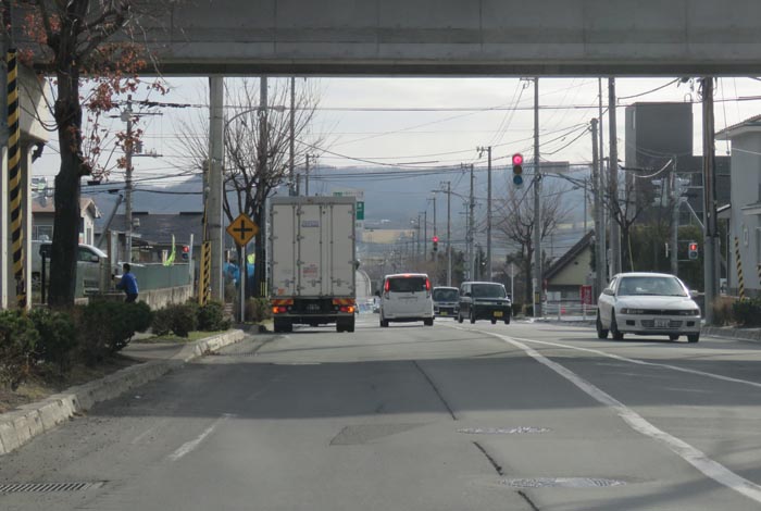 昭和通りの左は東7号線春光通りの柏陽駅方向