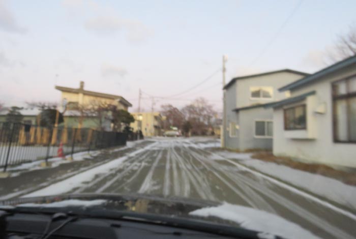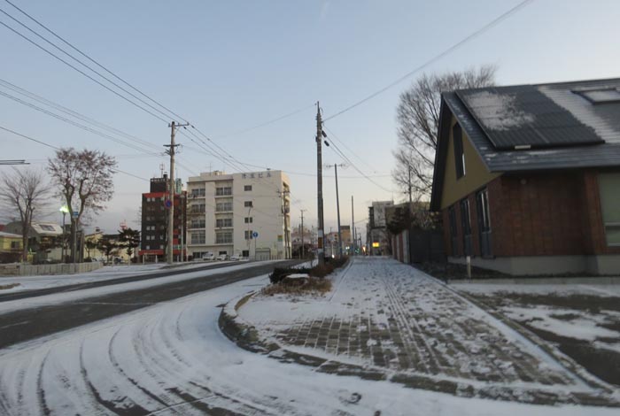 午前6時50分、松浦水産駐車場裏の通りを北3条通り側から北4条通り方向