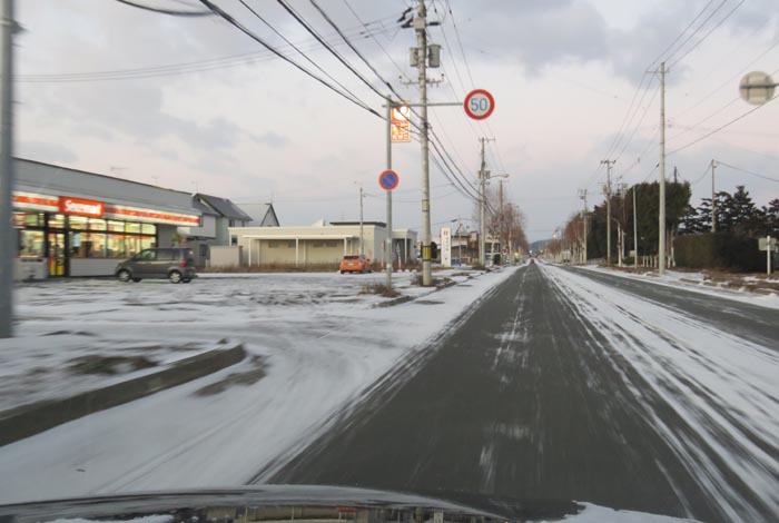 午前7時前、南岸通り、野付牛自動車学校前から無加川町方向