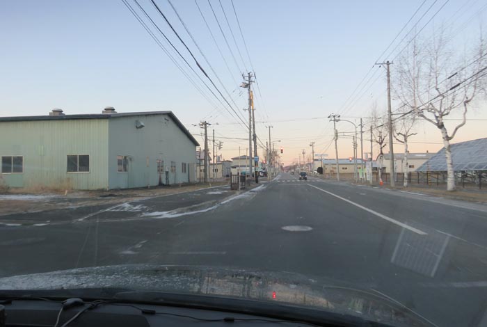 午前7時前、南岸通り、野付牛自動車学校前から無加川町方向