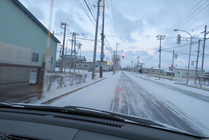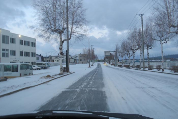 午前7時前、南岸通り、野付牛自動車学校前から無加川町方向
