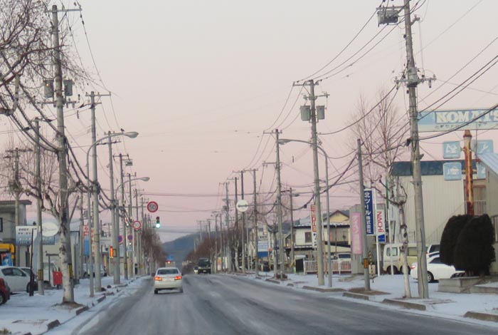 午前7時前、南岸通り、野付牛自動車学校前から無加川町方向