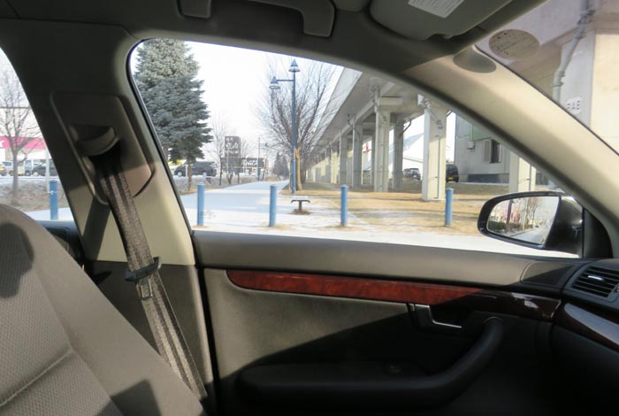 前方がJR石北本線高架橋、写真右が北見駅方向