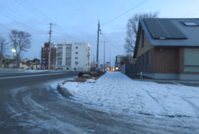 午前6時50分、松浦水産駐車場裏の通りを北3条通り側から北4条通り方向