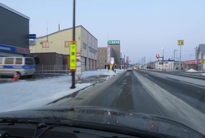 午前6時50分、北4条通りの国道39号交差点から緑園通り方向