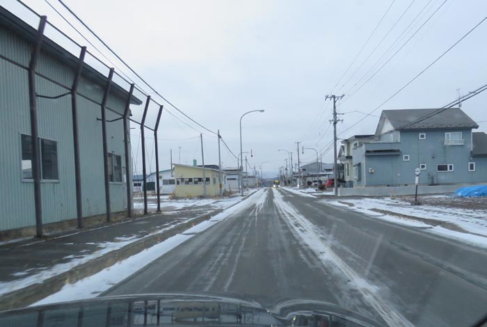 産岸通りから左折して西5号線のバス停前から北光通り方向