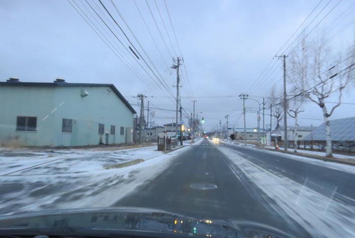 午前7時前、南岸通り、野付牛自動車学校前から無加川町方向