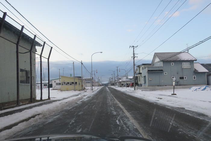 産岸通りから左折して西5号線のバス停前から北光通り方向