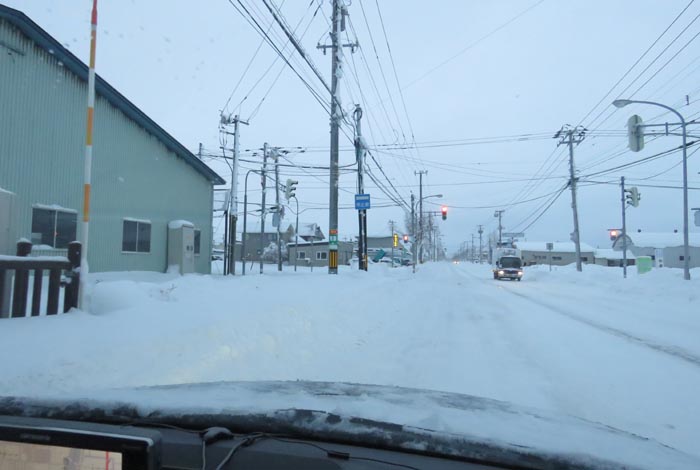 午前7時前、南岸通り、野付牛自動車学校前から無加川町方向