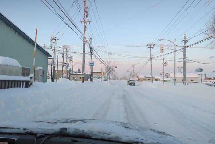 午前7時前、南岸通り、野付牛自動車学校前から無加川町方向