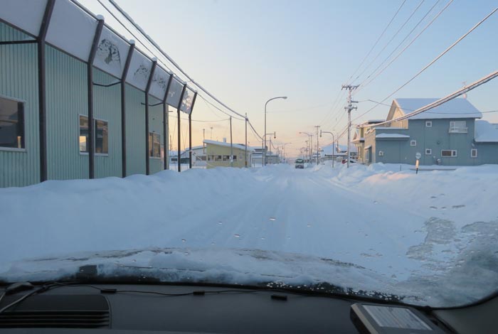 産岸通りから左折して西5号線のバス停前から北光通り方向