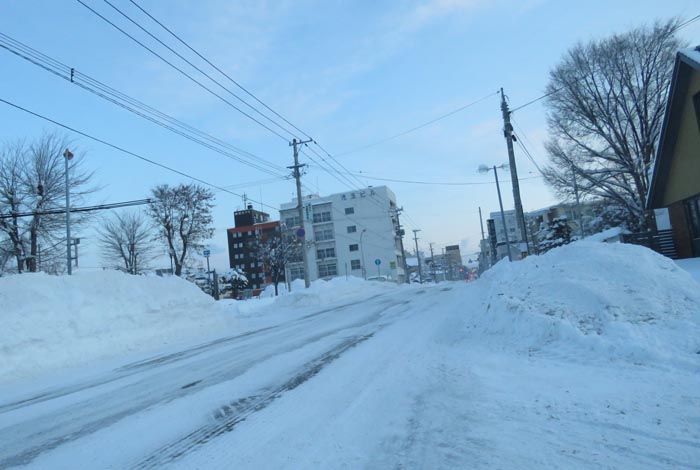 午前6時50分、松浦水産駐車場裏の通りを北3条通り側から北4条通り方向