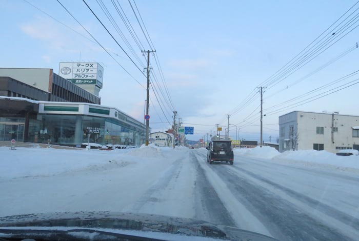 午前6時50分、北4条通りの国道39号交差点から緑園通り方向