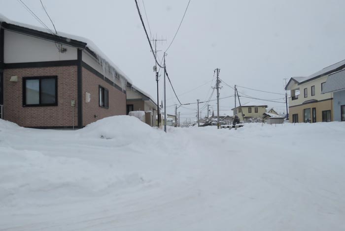 産岸通りから左折して西5号線のバス停前から北光通り方向