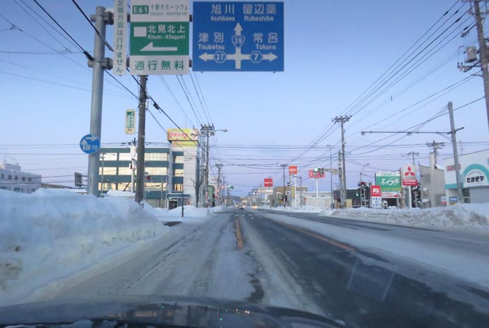国道39号、北見トヨペット前からとん田通り交差点方向