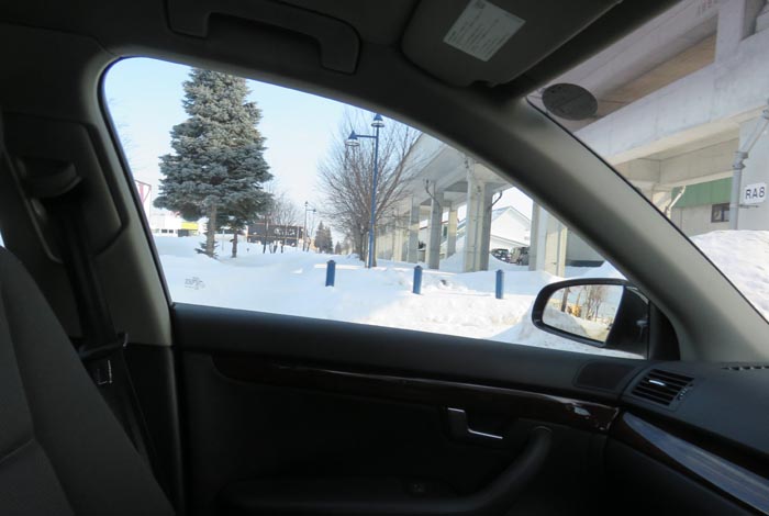 前方がJR石北本線高架橋、写真右が北見駅方向