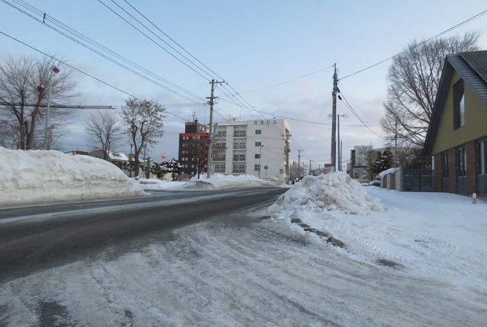 午前6時50分、松浦水産駐車場裏の通りを北3条通り側から北4条通り方向