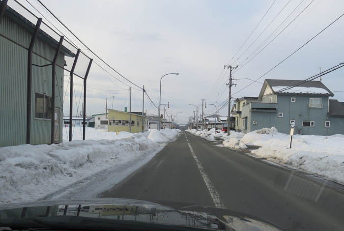 産岸通りから左折して西5号線のバス停前から北光通り方向