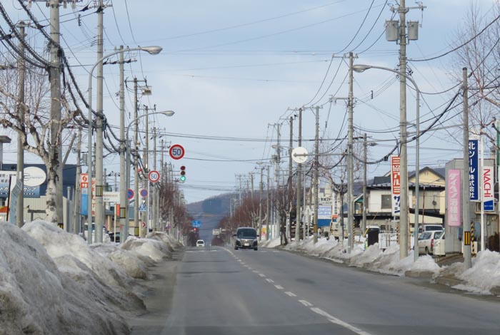 午前7時前、南岸通り、野付牛自動車学校前から無加川町方向