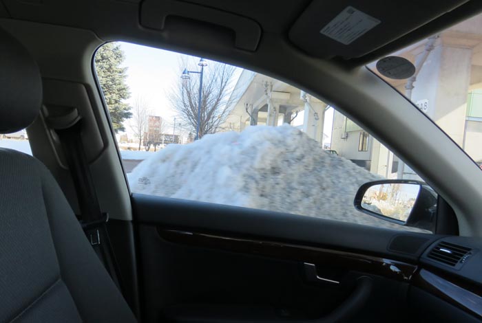 前方がJR石北本線高架橋、写真右が北見駅方向