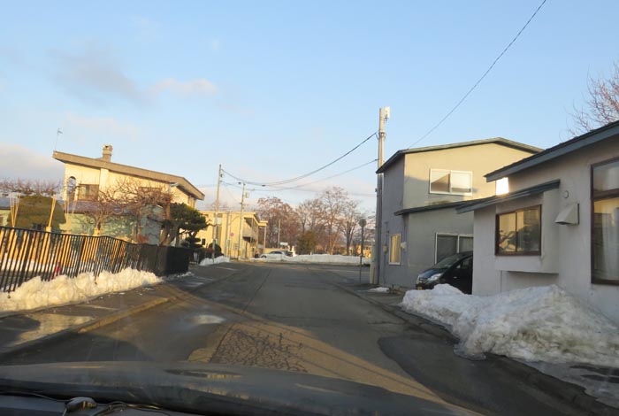 午前6時50分、松浦水産駐車場裏の通りを北3条通り側から北4条通り方向