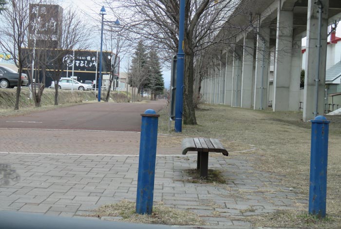 前方がJR石北本線高架橋、写真右が北見駅方向