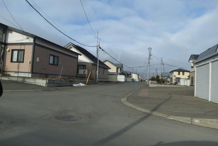 産岸通りから左折して西5号線のバス停前から北光通り方向