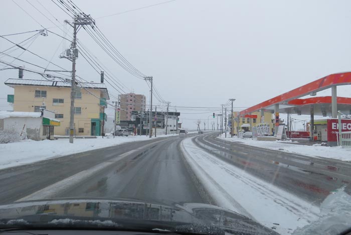 午前6時50分、西3号線とん田通りの北見中央病院前から無加川橋方向