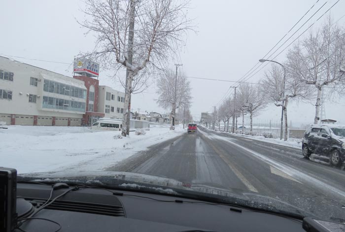 午前7時前、南岸通り、野付牛自動車学校前から無加川町方向