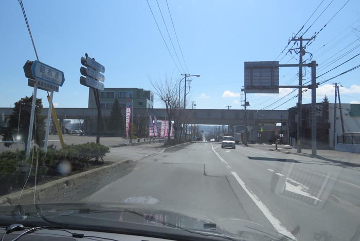 前方がJR石北本線高架橋、写真右が北見駅方向